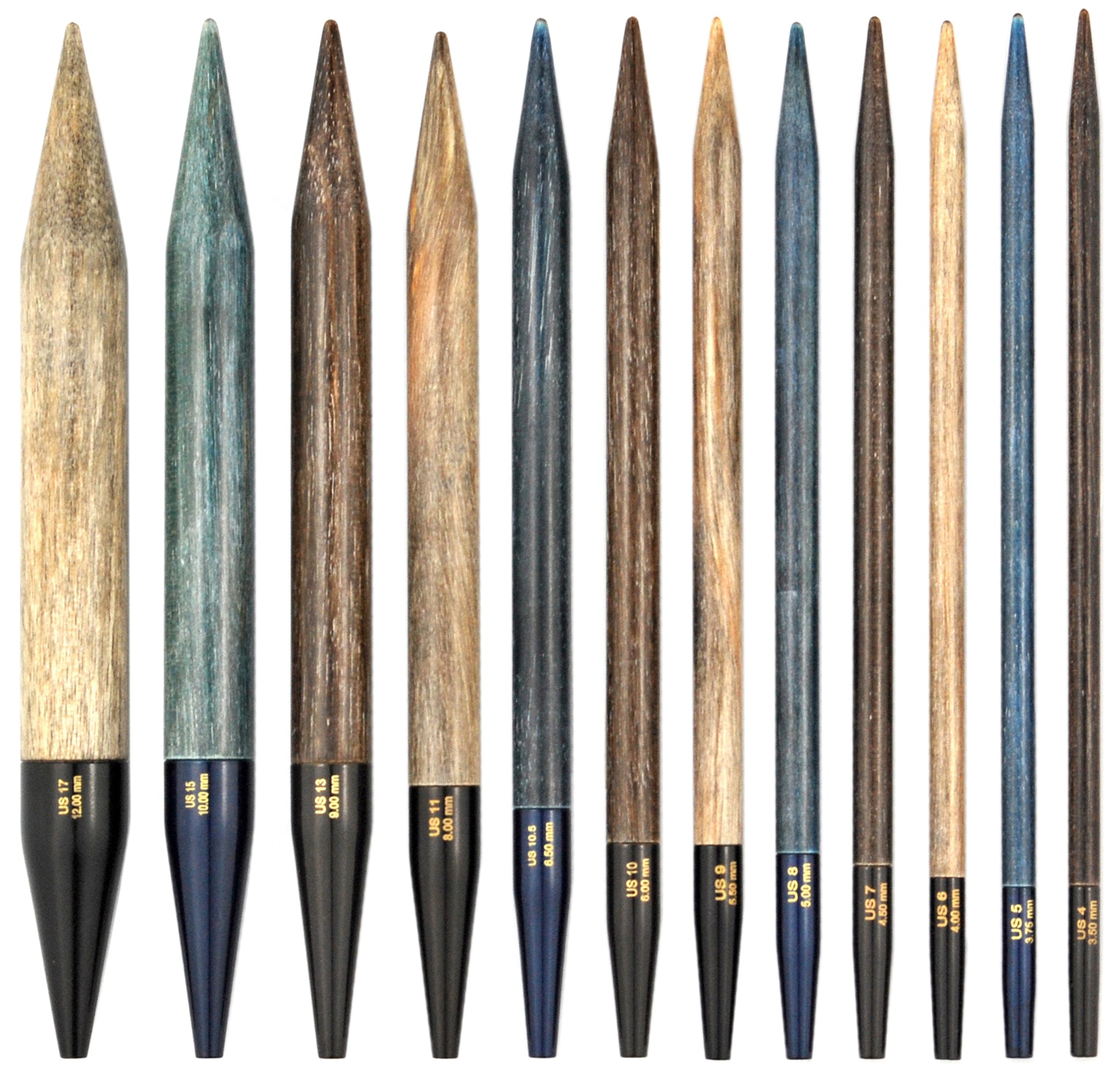 LYKKE interchangeable needle tips are a wonderful addition to any knitter's collection. The (long) 5" version allow you to create large circumference items such as jumpers, or those with a large number of stitches such as shawls. These needle tips are a must-have for any knitter. The original tips are made from laminated birch and are available in 4 colours, Blush, Driftwood, Indigo, and Umber. In addition there is a bamboo version in the Grove colourway, and a copper version called Cypra. You can pair these needles with a choice of cables to create any length of circular needle you require. The images of the sets are there to show the colours only. You will receive one pair of needles only!