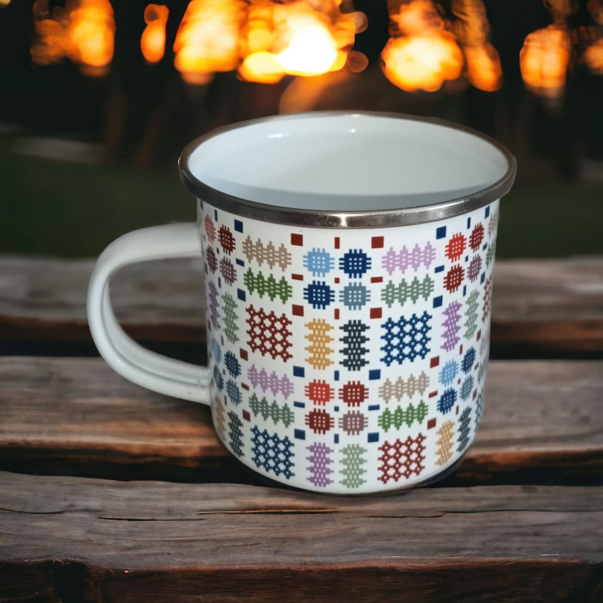 Perfect for pride season our new Stylish, pretty multi coloured enamel mugs with our signature Welsh tapestry designs, durable and practical too.